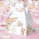 Pastel cream brown boho dried flowers and teddy bear with balloons baby shower favour boxes.