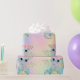 You will love this pastel rainbow watercolor background with a cute dragon in teal and yellow with pink peony flowers. Great for a girl's baby shower or a birthday party. Matching products are available.
