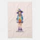 Pastel Cute Witch Girl Halloween Aesthetic Tea Towel
