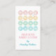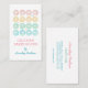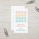 White business card with pastel-coloured doughnuts. A delicious business card for a pastry chef or bakery in pink, white, green, yellow, and blue.