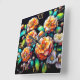Pastel Drawing Asian Orange Flower Blossoms Branch Square Wall Clock
