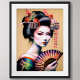 Pastel Drawing Geisha Kimono Fan The aspect ratio is 3:4.
