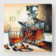 Pastel Drawing Glass of Liquor Crystal Decanter Square Wall Clock