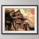 Pastel Drawing of Ancient Asian Temple Poster
