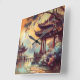 Pastel Drawing of Ancient Chinese Pagoda Village Square Wall Clock