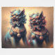 Pastel Drawing Shi Fu Dog Foo Dog Protection Fleece Blanket