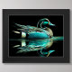 Pastel Drawing Teal Duck on Water The aspect ratio is 4:3.