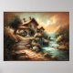 Pastel Drawing Vintage Style Landscape Water House Poster
