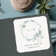 Pastel Dusky Blue Floral Wreath Wedding Monogram Square Sticker