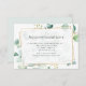 Woodland eucalyptus watercolor wedding accommodation card with gold geometric frame customisable to your event specifics.
