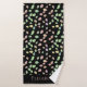 Silhouettes of falling leaves in pastel tones of primarily green and pink with yellow, peach, blue and mauve accents. Multicolored leaves in a random falling pattern. Set on solid black. Personalize with your name in uppercase pink font.