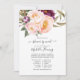 Pastel peach and pink floral bridal shower by mail invitation with accents of plum.