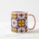 Delicate yet dynamic, this mug features a pastel kaleidoscope of blooming floral patterns in soft pink, buttery yellow, bright white, and rich brown tones. Intricate linework and symmetrical petal clusters give the design a whimsical, mandala-like structure that feels both sweet and sophisticated. The soft pink handle and interior complete the look with a gentle, feminine touch—perfect for springtime sipping, creative mornings, or gifting someone who loves lighthearted design.