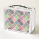 This is a standard metal lunchbox that appears to work just fine. We designed this box ourselves with an uploaded photo and custom text on the front and back. It looks absolutely beautiful except the front of the lunchbox is not centered like it shows in the photo. The print borders don't align with the inset flat part of the box where the preview photo online showed it perfectly centered in there. The back looks nice and centered though.