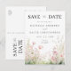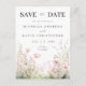 This design features a delicate watercolor illustration of wildflowers in shades of green and pink.