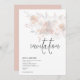 Subtle minimal style with beautiful pastel florals in shades of blush pink, peach and soft grey across the top from the right hand side. The header Invitation is in a stylish set script typography slightly aligned to the right. The rest of the text is to the bottom left hand side. You can easily personalise the editable text to your own details and also change the font style and colours of this text if you wish via the customise further option, as well s the coordinating blush background colour on the reverse.