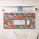 This desk mat has a pastel flower pattern on it.