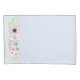 Pretty pale blue pillow case, with a blue and white stripe pattern, on the hem area. Beautiful pastel coloured flowers decorate the bottom of the pillow cases hem. Customise to add any text you want. Matching duvet cover and throw pillows available.