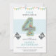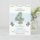 Delightful pastel racetrack number four with colourful cars, chequered flags, and watercolor bunting. A soft, playful design perfect for a boy’s fourth birthday party.