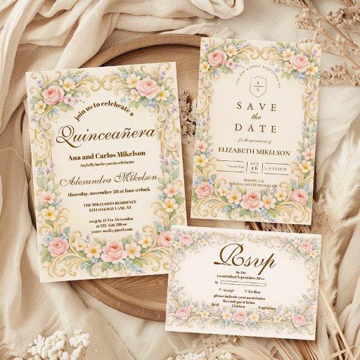 Pastel Garden Baroque Quinceañera Invitation