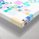 Multisized squares in a geometric pattern. Multicolored in pale pastel shades. Funky retro and fun.