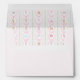 This envelope has a pastel color palette and features a gingerbread house cookie on the front with text that says "kindly deliver to." You can add your name and return address. The inside has a coordinating pattern.