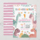 Pastel Girl Dinosaur 1st Birthday Invitation