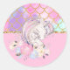 Pastel Gold Glitter Unicorn and Baby with Flowers Classic Round Sticker