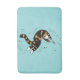 Funny cat bathmat with an ink illustration of a weird cat creature swimming with eel like movements over light blue customisable background. Flesh is somehow stripped from its hands showing its skeleton, yet the cute animal is in its happiest state of mind. That's what sea and ocean make you feel - bliss.