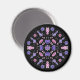 Pastel goth witch magnet with a symmetrical pattern of pink and purple pentagrams, potions in flasks and plants against black background. This pillow will make a great addition to your witchy decor.