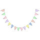 Enhance your party with our Pastel Gradient Theme Triangular Bunting Banner! This charming decoration features a beautiful blend of pastel pink, peach, mint green, light yellow, lavender, and baby blue shades that bring a soft and whimsical touch to your event. Perfect for weddings, birthdays, baby showers, and any celebration that calls for a delicate and elegant atmosphere. Hang these triangular flags to create a dreamy and enchanting effect that will captivate your guests. Elevate your event with this exquisite pastel gradient bunting banner!