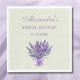 Personalise this Lavender Blossom Bridal Shower Napkin, the epitome of elegance and femininity. With a delicate sage green background, this paper napkin is the perfect canvas for the enchanting lavender flowers that gracefully adorn its surface. The subtle interplay of lavender blooms tied with a romantic bow, and lush greenery creates a picturesque scene, evoking a sense of tranquillity and natural beauty. Whether placed delicately atop place settings or elegantly displayed on buffet tables, these napkins effortlessly elevate the ambiance of any bridal shower affair.