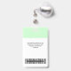 Easily personalise this Black and White Custom Employee Name Badge with Photo, Scan Bar Code and business logo. A simple business design in fresh pastel green and white standard colours fully customisable in front and back sizes, sans-serif basic and modern fonts and a professional and clear look. Avaiable with lanyard, metal clip or with retractable. No minimum order.