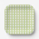 A pretty spring paper plate with a soft green Gingham check pattern . Perfect for Easter or any other spring celebration .