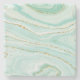 Pastel green liquid marble gold accent stone coaster