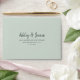 Chic, modern and simple self-addressed RSVP envelope with your names in off-black elegant handwritten script calligraphy on a pastel green background. Perfect for your wedding! Simply add your names and address. Exclusively designed for you by Happy Dolphin Studio.
