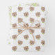 PASTEL GREEN & TAN TEDDY BEAR FACES HEARTS PLAID WRAPPING PAPER SHEET