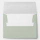 This pastel green return address envelope features an elegant white script surname paired with a refined serif address line, all centred on the envelope flap for a minimalist, upscale look. The muted green tone brings a calm, organic feel, while the soft white lettering adds a fresh and clean contrast. Perfect for weddings, outdoor celebrations, eco-friendly events, or stylish personal stationery. Fully customisable with your address details for a beautiful, refined finish.