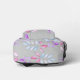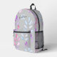This customisable backpack features a botanical pattern, showcasing stylised hand-painted watercolor leaves arranged in vertical formations. The soft grey background provides a neutral base, allowing the vibrant pink and muted lavender leaves to stand out. The elongated, teardrop-shaped leaves create an organic feel, while the consistent repetition of the pattern adds visual interest. What makes this backpack unique is its customisable feature. The name is elegantly printed in cursive font on the upper part of the bag, allowing customers to personalise it with their own text. Whether you’re strolling through the city or embarking on an adventure, this backpack combines style and functionality!