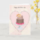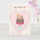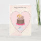 Valentine’s card featuring a pretty chocolate cake with strawberries and flowers inside a large heart with loving words printed around perimeter of heart in soft pastel colors.