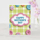 This greeting card features a cloud-shaped sign centered on a light green and white gingham background that feels cozy and homey. A scalloped border made of tiny pink dotted lines outlines the cloud, giving it a soft, affectionate frame. In the middle of the cloud, the text “HAPPY MOTHER’S DAY” appears in teal lettering, standing out clearly against the white shape. Around the edges of the card, rounded pastel circles overlap the frame like friendly little visitors, with gentle shadows that make them look slightly raised. The circles come in soft pink, pale blue, warm orange, and light purple, and a few have sweet faces—one with heart-shaped eyes ❤️, another with a calm smile, and another with a thoughtful curved mouth. Others keep things simple with a single dot or small cutout-like marks that resemble buttons or candy pieces, adding a quiet, caring touch. The lighting stays soft and even, letting the gingham pattern and the tiny details feel tender rather than sharp. Several pastel circles sit near the corners, with their drop shadows falling subtly down and to the side 🌼.