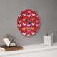 Pastel Hearts on Red Wall Clock