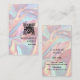 These elegant business cards feature a colourful holographic neon, trendy colourful neon stroke on a rainbow. Your name appears in trendy handwritten script typography. There is also room to include your social media information on the back.
