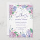 Pastel Hydrangeas Floral Wedding Invitation designed in shades of soft purple, blue and pink, on a white background. The front text includes: The Bride and Groom's Names, Date, Time, Location and Address. The reverse text includes: your Reception Location and Details, on a soft purple background with white text, and Hydrangeas Bouquet. To personalise this invitation simply insert your details into our easy template, replacing the sample text. Be sure to view the complete Pastel Hydrangeas Wedding Collection for matching cards and accessories.