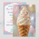 A whimsical fun glassy ceramic like ice cream cone with sprinkles birthday party invitation for female child or adult. Beautiful pastel balloons in colors like pink, blue, sage green and gold for a background. On the back you can edit all the details of your birthday party.
