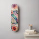 Swirl into something striking with this bold floral monogram skateboard featuring an abstract rendition of the letter S. Watercolored in royal and navy blue, the serif “S” curves gracefully at the centre of the board — nestled between the trucks — and accented by a vibrant explosion of Gerbera daisies in jewel tones of red, purple, and orange.