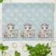 Pastel Kawaii Unicorn Mother Daughter Duo Blue Tea Towel