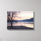Photograph of a misty lake at sunrise with a silhouetted oak tree, printed on a Stretched Canvas. --- Photograph is copyrighted by the photographer, Christina Spiegeland.
