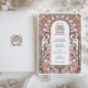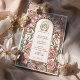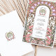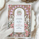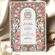 This enchanting Art Nouveau-inspired wedding invitation showcases a delicate arrangement of soft pink flowers and pastel lilac accents, framed by flowing lines and intricate organic details. The sophisticated design embodies the timeless elegance of the Art Nouveau movement, with its harmonious colour palette of pinks, greens, and creamy beige. Perfect for romantic, vintage, or garden-themed weddings, this customisable invitation exudes charm and refinement, offering a unique and artistic touch to your special day.