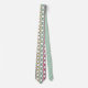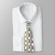 This necktie has a mid-century modern design of white “deformed” circles connected with black lines on a field of pale green, pale pink, pale blue, and pale yellow strips. If you like the design but prefer different colours, message me.